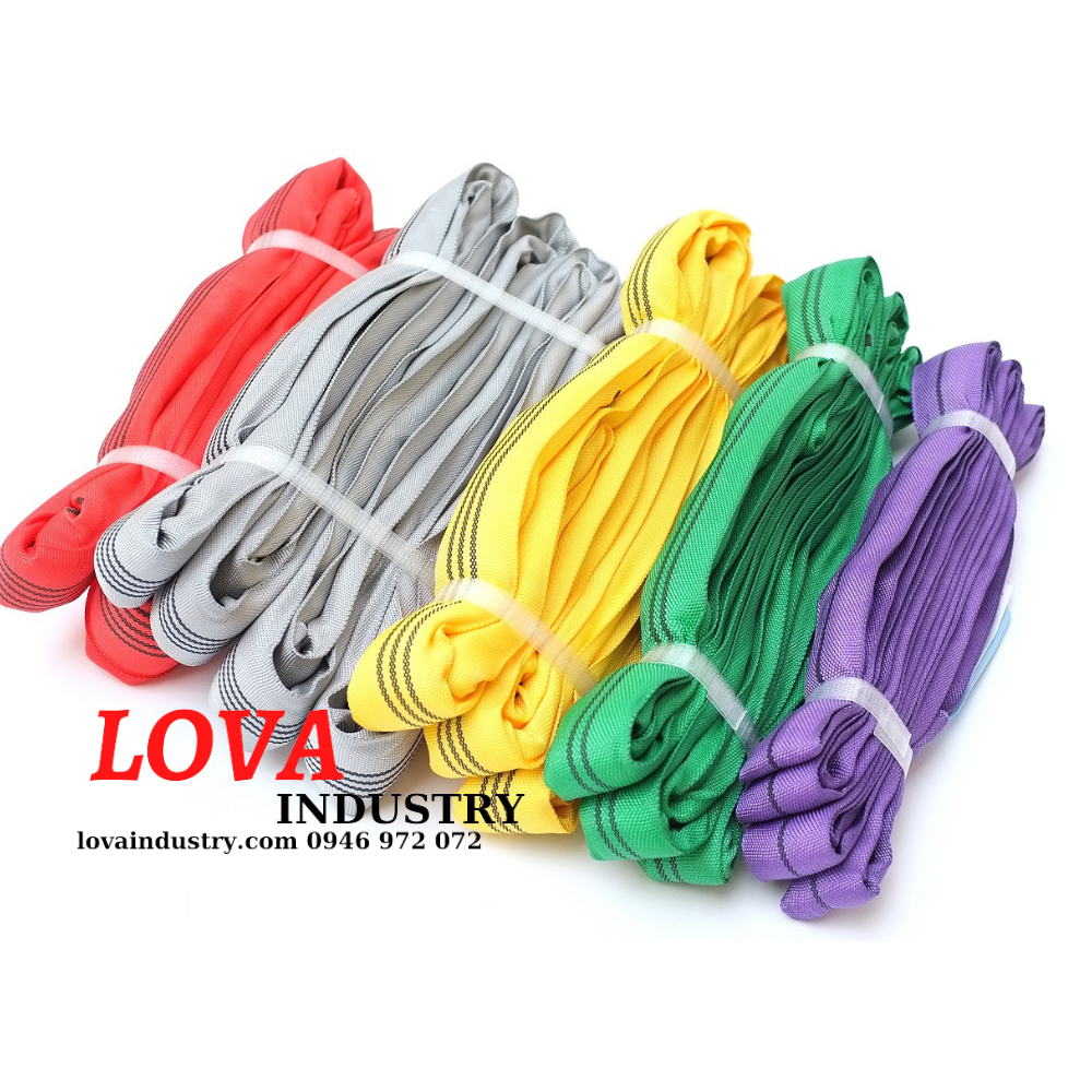- Dây cáp vải cẩu hàng bản tròn dùng để nâng các vật phẩm tròn, Các vật dụng phổ biến như ống bê tông, ống thép, cột cờ hoặc cột đèn, ống mềm, vật dụng mỏng dễ móp, biến dạng.