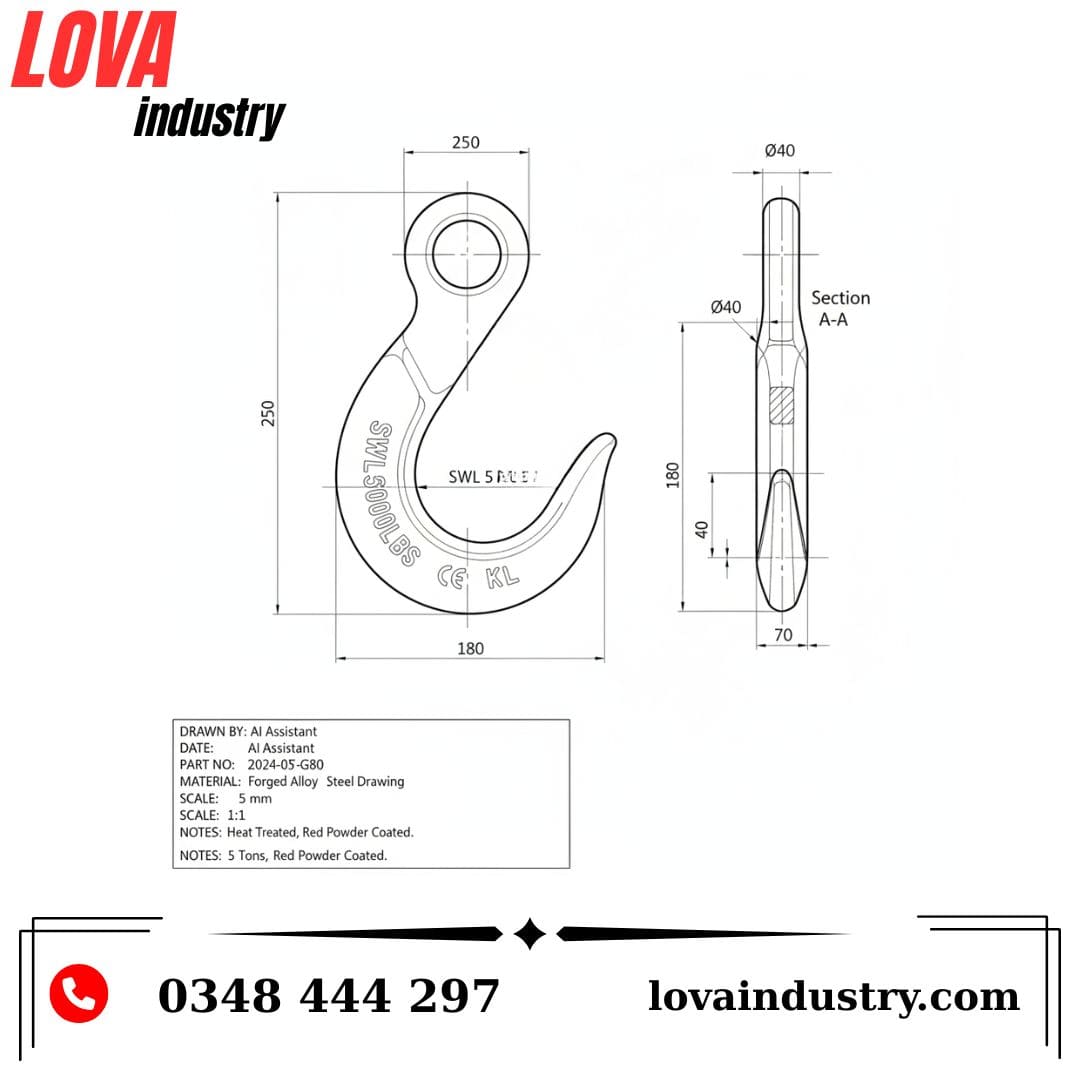 Lova shop chuyên phân phối các loại móc cẩu, móc treo, móc cẩu hàng, là một trong những thiết bị nâng hạ được sử dụng nâng hạ các thiết bị đòi hỏi hệ số an toàn cao. Móc cẩu thường được thiết kế với nhiều tải trọng khác nhau tùy theo tải trọng của vật được nâng mà người ta chọn sử dụng móc cẩu tương ứng với vật được nâng đó. Trong đó có móc cẩu 2,25 tấn H5000LH haru hay còn được gọi là móc cẩu haru 2,25 tấn H-5000LH, móc cẩu haru H-5000LH, móc cẩu haru 2,25 tấn, H-5000LH, là một model móc cẩu của hãng haru sản xuất chính hãng tại đài loan thương hiệu nổi tiếng về chất lượng sản phẩm. Móc cẩu 2,25 tấn H-5000LH Haru được thiết kế với phần móc có khoen tròn lưỡi gà bảo vệ được đổ khuôn in chữ nỗi với nhãn hiệu HARU. Móc cẩu 2,25 tấn h-5000lh haru được chế tạo bằng thép siêu cứng với độ an toàn rất cao nếu so sánh với các loại móc cẩu 3 tấn cùng loại được sản xuất ở trung quốc. Phần thân của móc cẩu haru được sơn tĩnh điện sáng bóng độ nhắn mịn cao hoàn thiện rất cao.