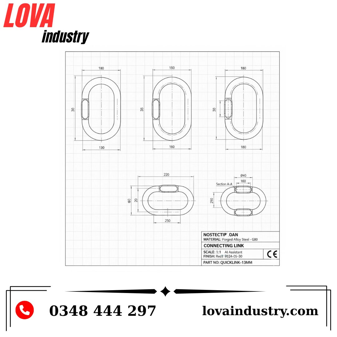 🔩 Ứng dụng: Kết hợp với xích cẩu, móc cẩu trong cẩu hàng, nâng dỡ máy móc, container, vật liệu xây dựng...