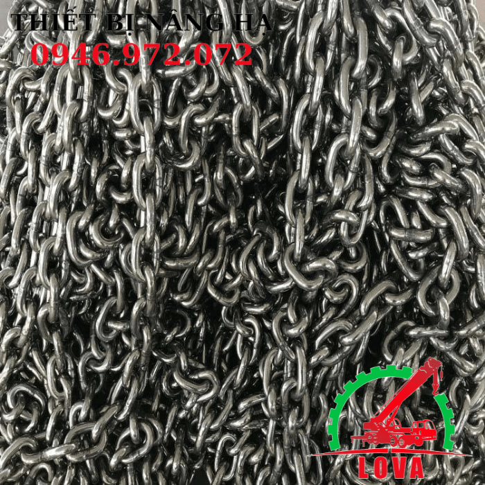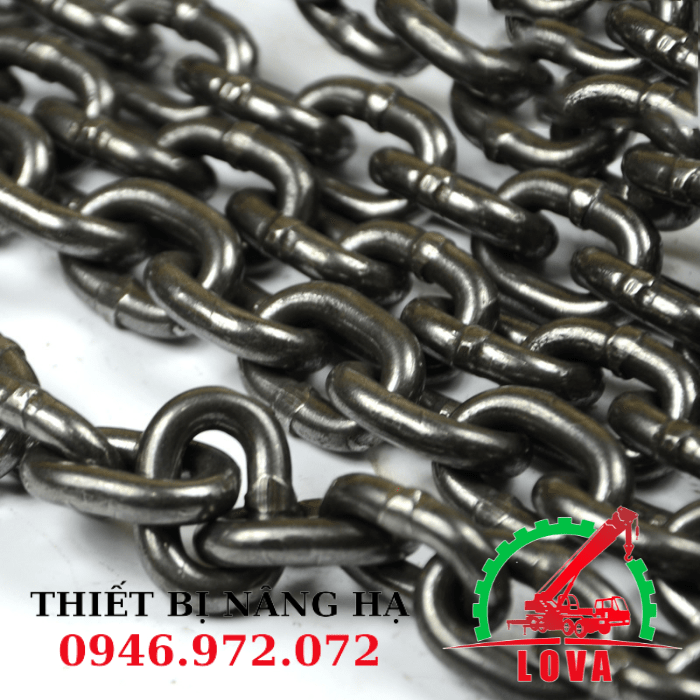 - Dây xích chịu lực phi 16 có trọng lượng 5.7kg/m và được bảo quản bằng trong thùng nhựa có dầu.