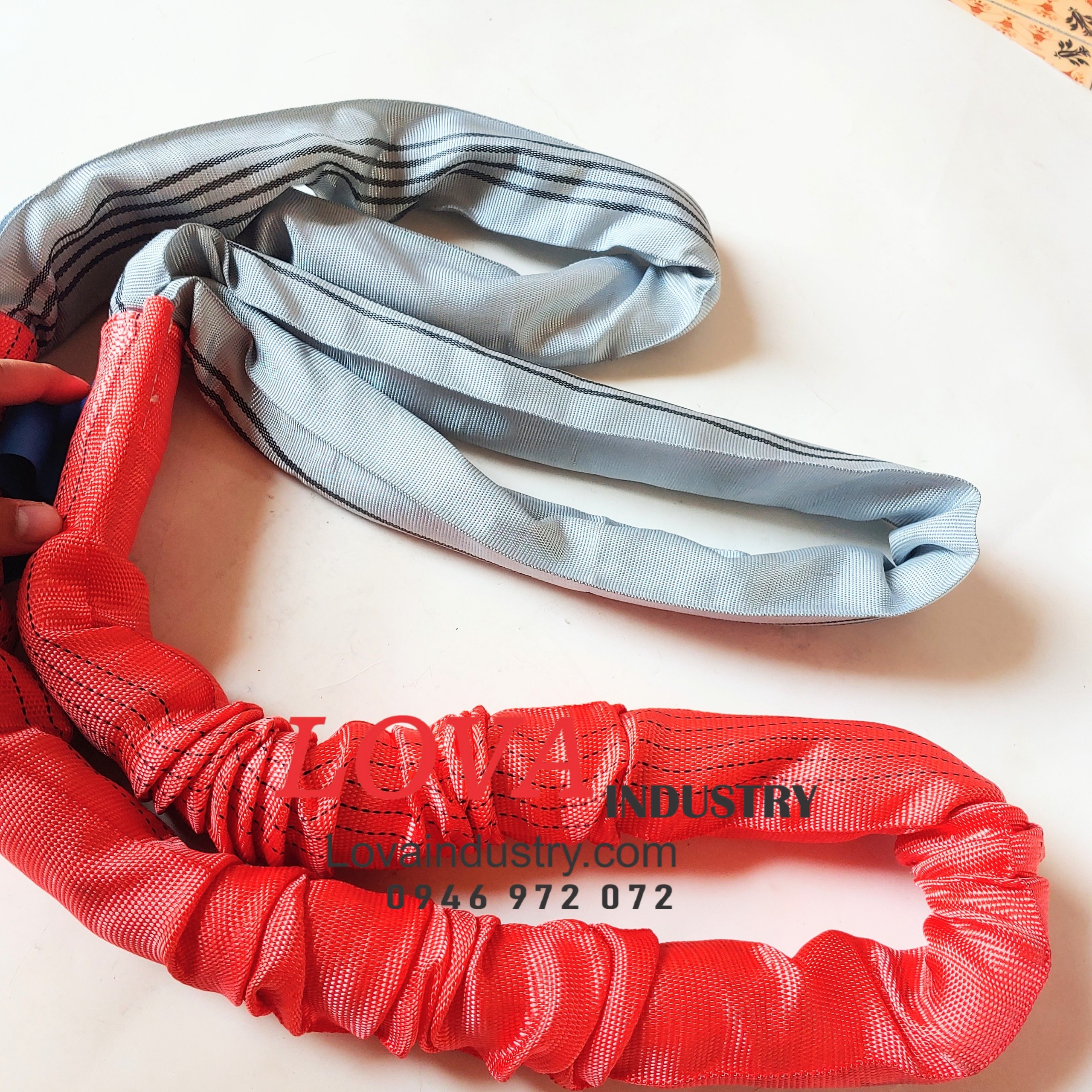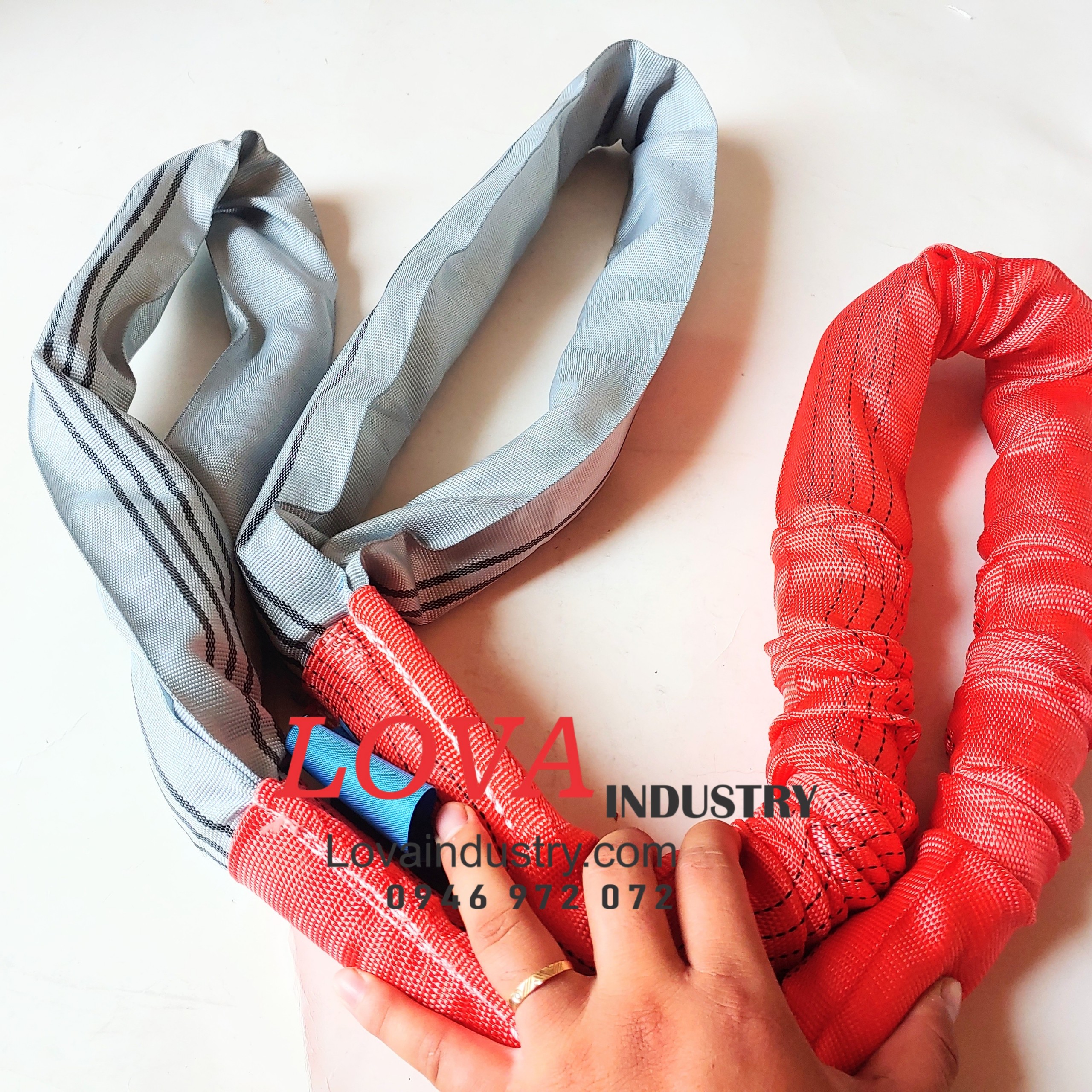 - Dây cáp vải cẩu hàng bản tròn 2 đầu mắt dùng để nâng các vật phẩm tròn, Các vật dụng phổ biến như ống bê tông, ống thép, cột cờ hoặc cột đèn, ống mềm, vật dụng mỏng dễ móp, biến dạng.