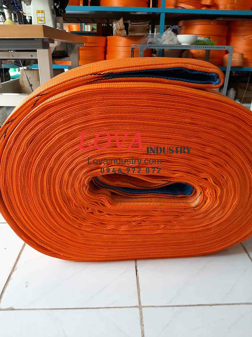 Cáp vải cẩu hàng 20 Tấn được LOVA sản xuất theo yêu cầu với chiều dài 25 Mét, khối lượng sợi dây lên tới 100kg được may bốn lớp với chất liệu 100% Polyester cường lực theo tiêu chuẩn Châu Âu, Đảm bảo tải trọng làm việc, và độ bền cao.