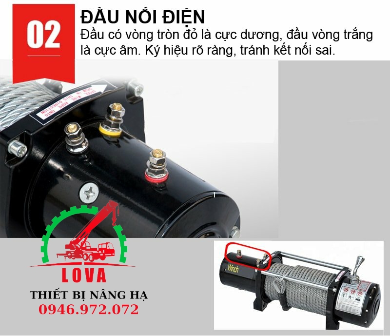 Sử dụng bình ắc-quy phù hợp với tải trọng của tời kéo xe.