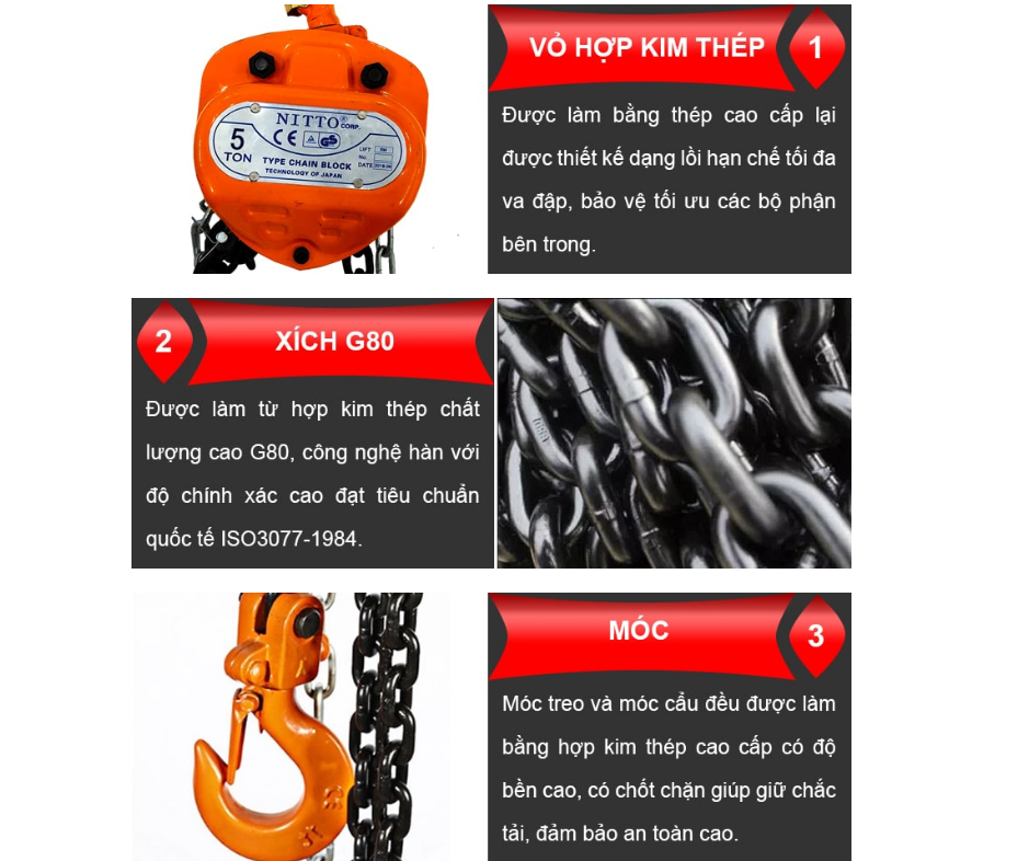 Ưu điểm của pa lăng xích kéo tay nitto 3 tấn 3 mét