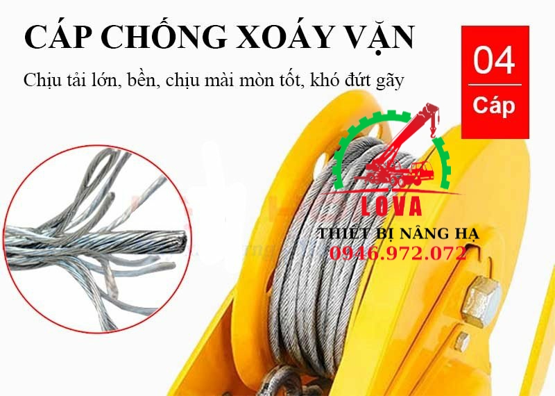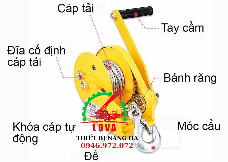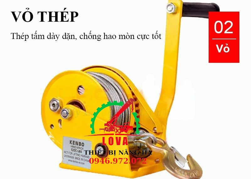 - Tời quay tay 1200lbs 545kg sử dụng để: nâng hạ tải, kéo tải, kéo căng, tời tải
